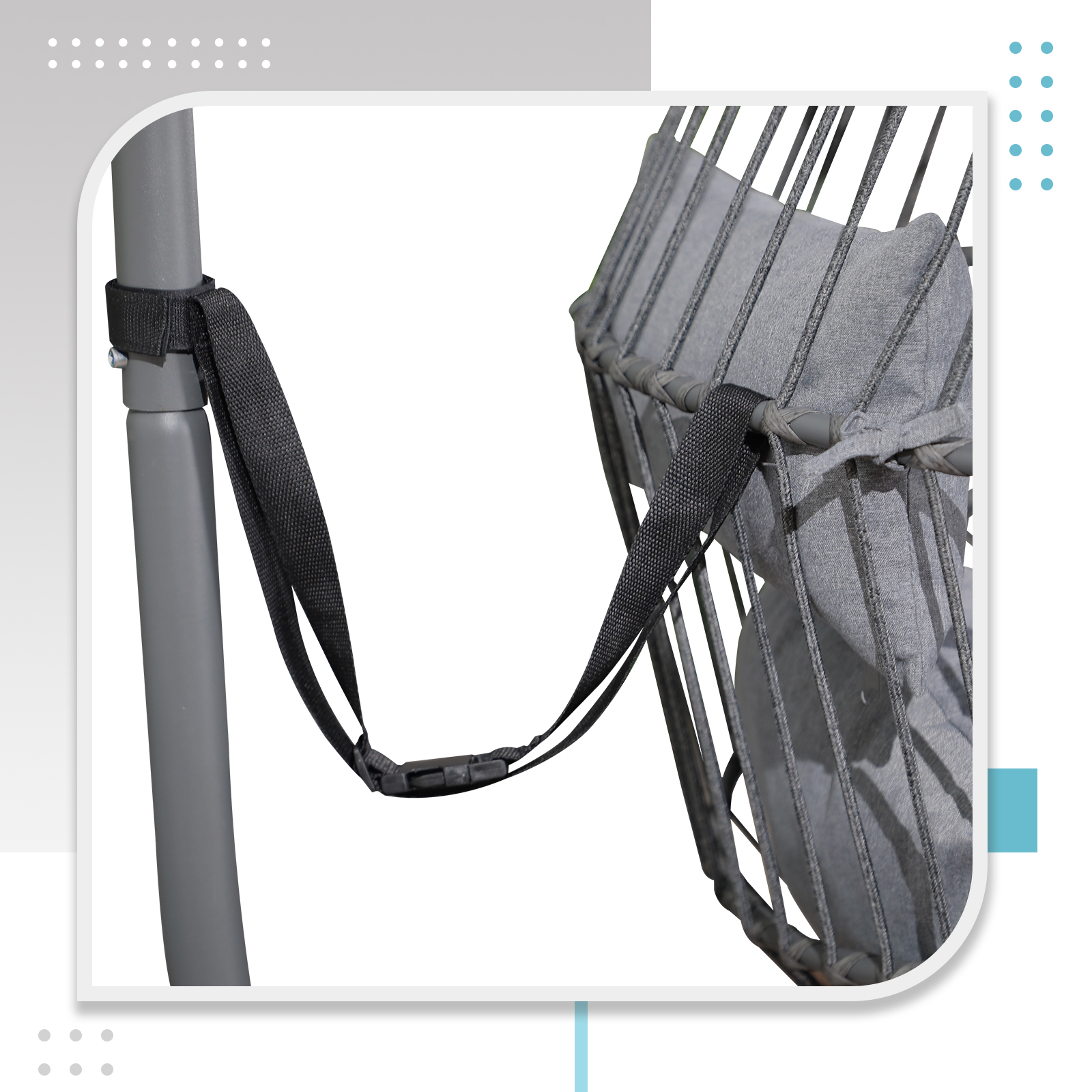 - WIDELY USED: As a combination of stability and portability, the wicker hanging egg chair comes with its own base and can be easily put in the backyard, garden, pool, or inside the home. The attached safety strap allows the outdoor patio wicker chair seat to keep securely fastened to the chair stand.