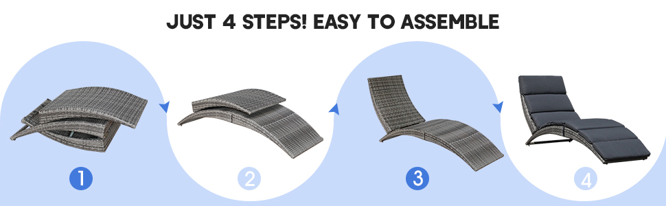 - 4-Step Assembly-This outdoor lounger includes all necessary hardware and instructions. We are at your service anytime if you find any damage caused in transit or problem during assembly (Please kindly notice that this lounge chair has no adjustments to lay flat, only one stationary position)