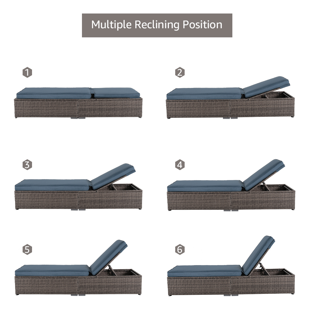 - ADJUSTABLE BACKREST -The pool lounge chair is a perfect spot for relaxing, reading, or soaking up the sunshine. With five reclining positions, you can find a chaise lounge outdoors a good way to make yourself comfortable. Included gray cushion rounds out the design, providing padding as you kick back and unwind.