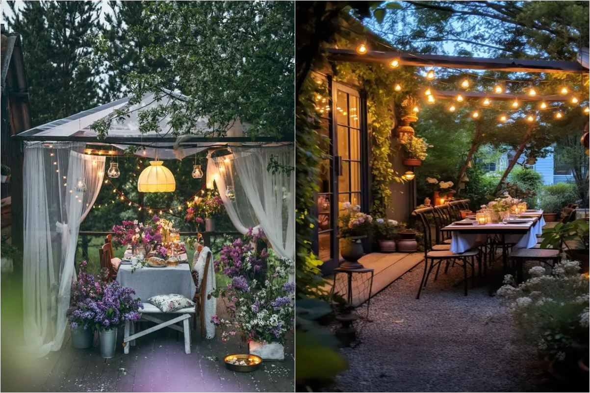 Plants play a vital role in enhancing the outdoor dining atmosphere. Choose easy-to-care-for varieties like lavender or rosemary, which not only add charm but also offer delightful fragrances. Use hanging lights, candles, or string lights to create a cozy and romantic ambiance.