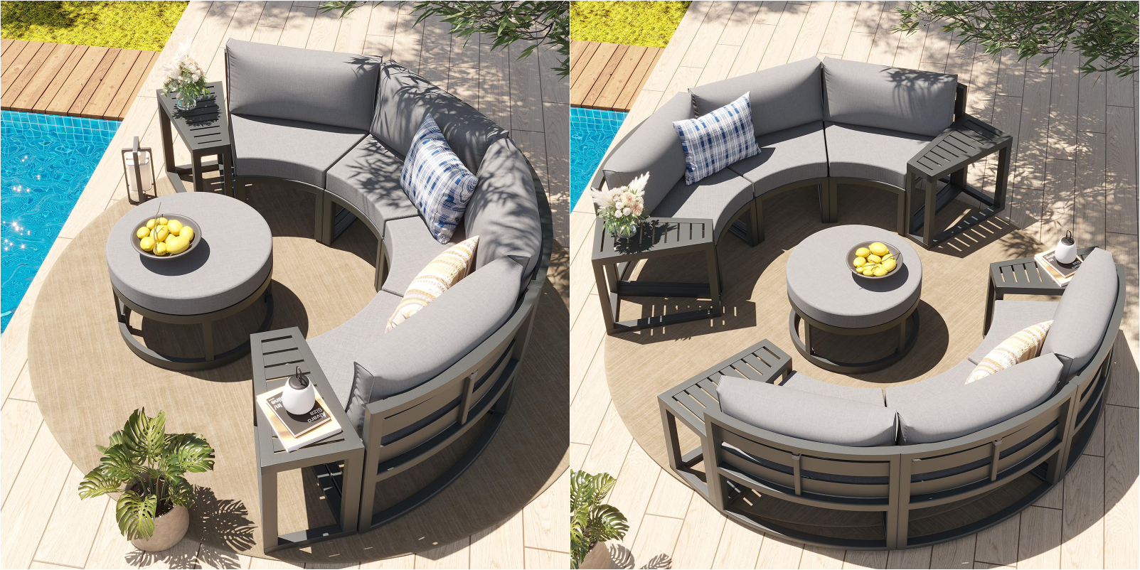 For those who love a modern, polished look, our aluminum curved sofas are a game-changer. They’re perfect for urban patios, rooftop terraces, or any space where you want to create a sleek, sophisticated vibe.