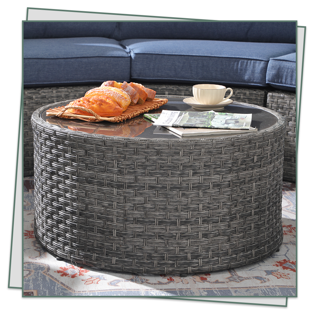 Complex Wicker PatternRich grey PE wicker rattan combines style and durability to make your outdoor space look new. |