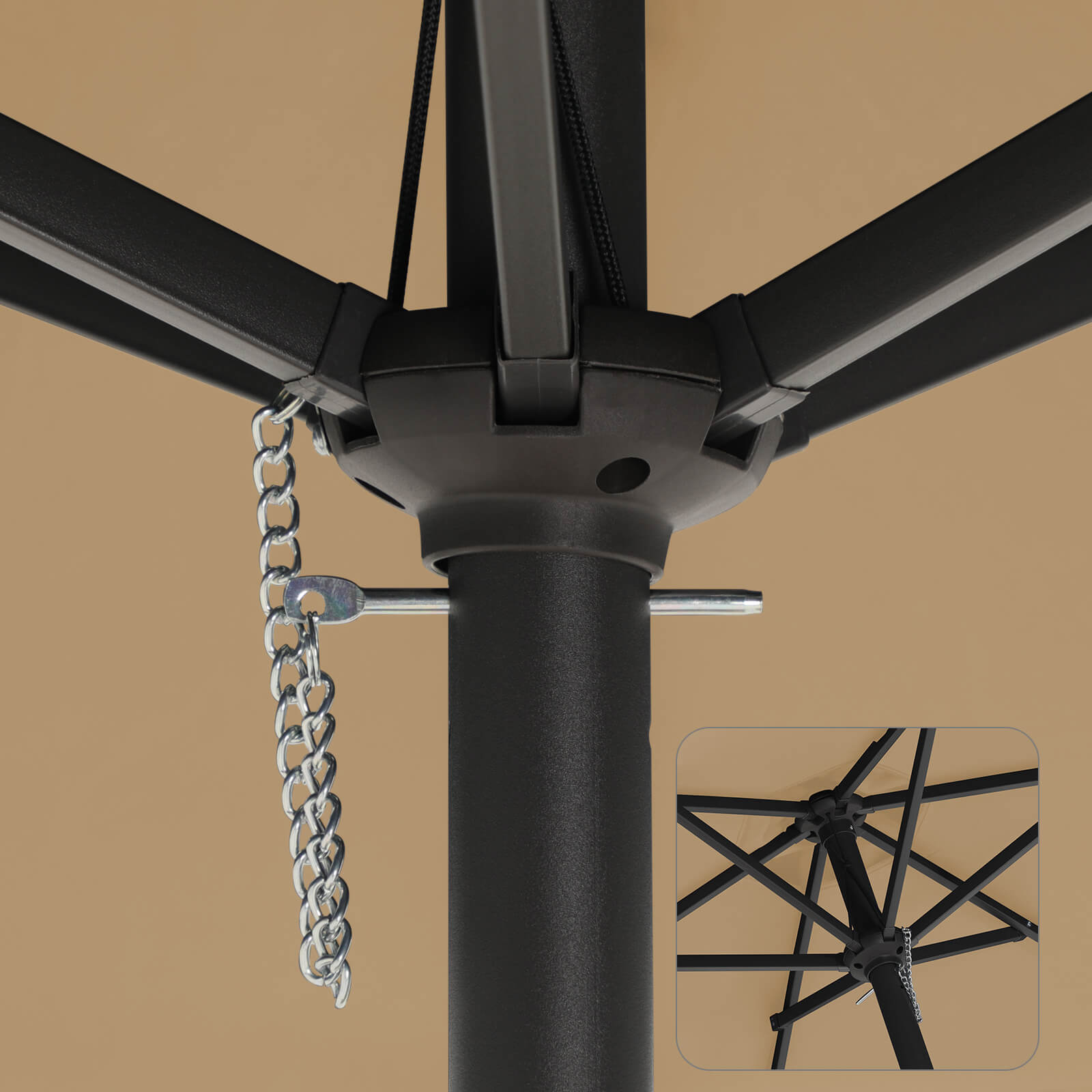 Crank Mechanism Crank system for opening and closing the umbrella, easy to use. |