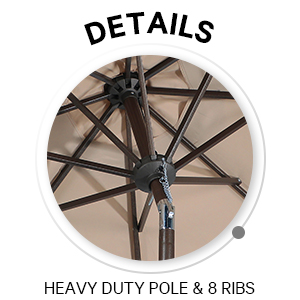 Made with durable steel frame and 8 sturdy ribs that ensure to enjoy the outdoor umbrella for years. |
