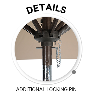 There are two locations of the patio umbrella to insert the locking pin, which is designed for double safety. |