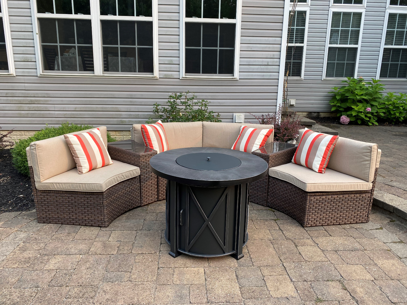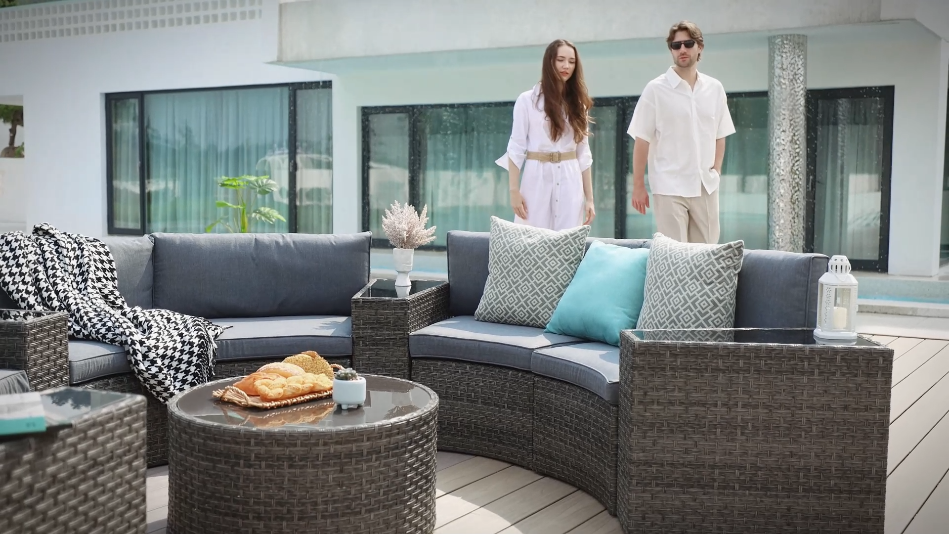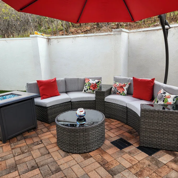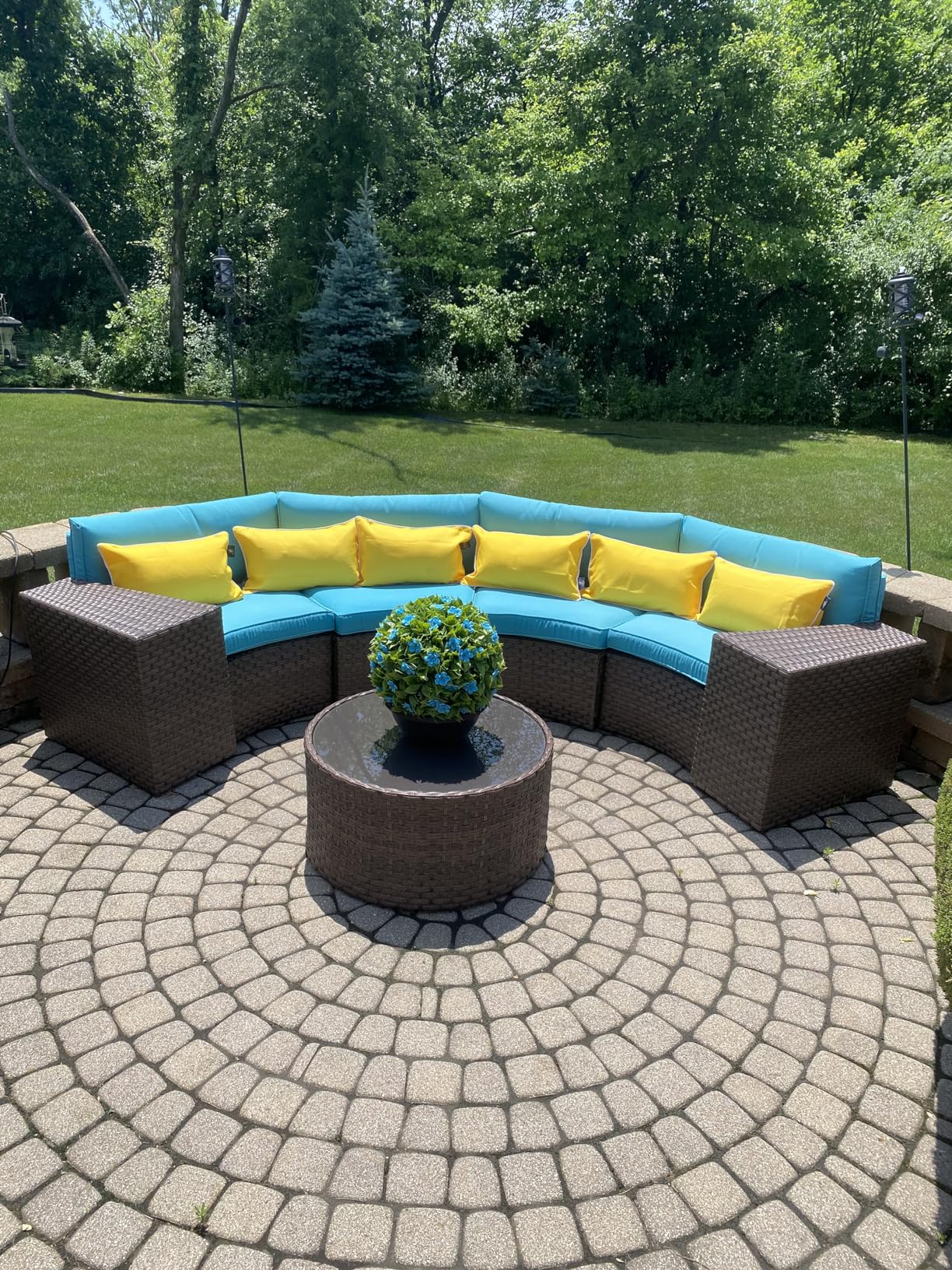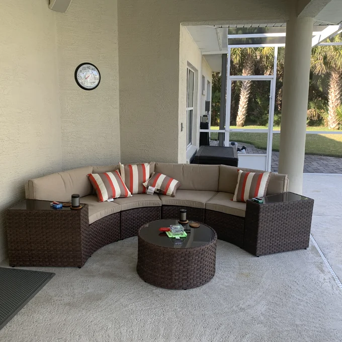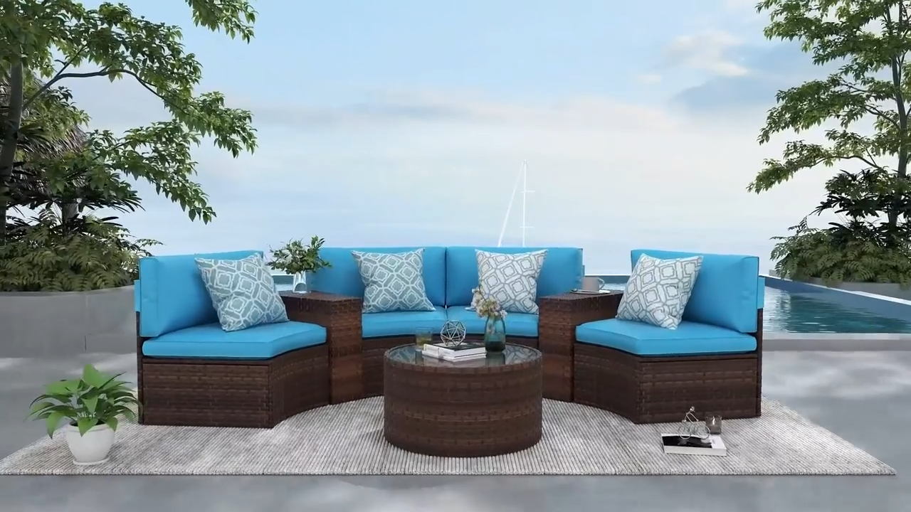 - 【Comfort Upgrades】 - Multiple arrangement possibilities. Whether arranged together or used separately, this curved patio furniture provides a comfortable experience for you and your guests. With our exclusive throw pillows, the half-moon outdoor furniture offers extra support and comfort outdoors even indoors.