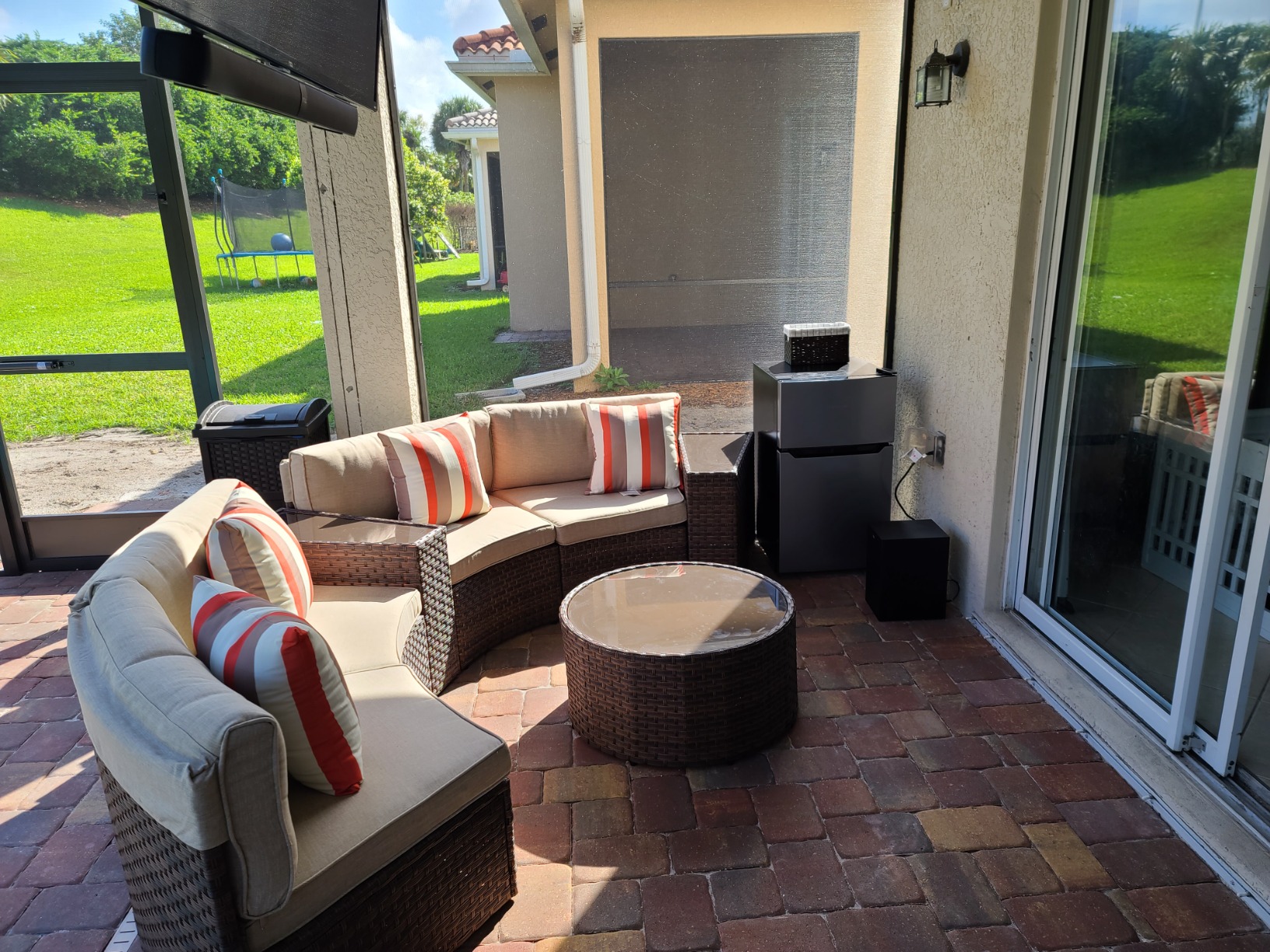 - 【Four Side Tables】 - The sophisticated wicker design side table is hand woven by resin wicker and powder coated steel framed for seasonal outdoor use. It is a great addition to the curved outdoor sectional to keep books, drinks, foods and small plates within reach. The tempered glass table top requires low maintenance.