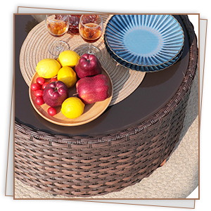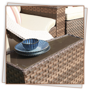 | Materials | PE rattan, Glass tabletop |
