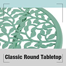 - ELEGANT LEAF DESIGN-The exquisite leaf patterns and antique copper finish on the table and chairs add an elegant charm to your outdoor space. The stylish and elegant outdoor bistro set is perfect for breakfast, outdoor brunch, or afternoon tea.