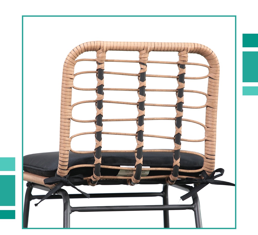 Chic Meets ClassicInspired by the classic faux leather bar stools indoor, we scaled things up a bit and added our signature garden touch with woven rattan. Beige Rattan brings an elevated, relaxed warmth into any space. Here, we start with a beautifully proportioned black steel frame and achieve a unique hollow-out surround texture by weaving the rattan to display the collision of classic and modern.