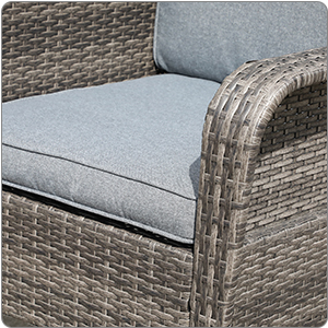 | Designed with a slightly sloping backrest and curved armrest the rocker is comfortable to sit and relax. Deep seating with a 21inch seat height to match your style. | Simple tailored chair seat cushion with piping finishing, both crafted from polyester with foam fill, the neutral color makes it the perfect addition to your patio, living room. | Stable base lets you gently rock back and forth for a relaxing experience. Enjoy your new rocker in cushioned comfort, whether you're on the porch or in a living room watching TV. |